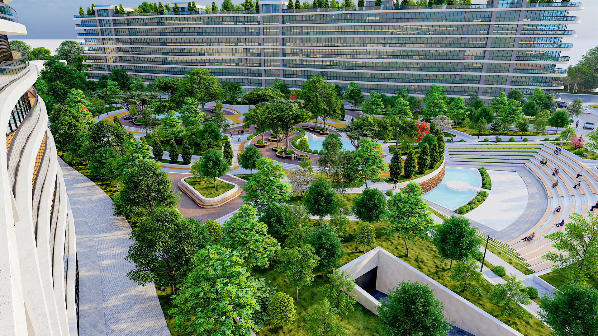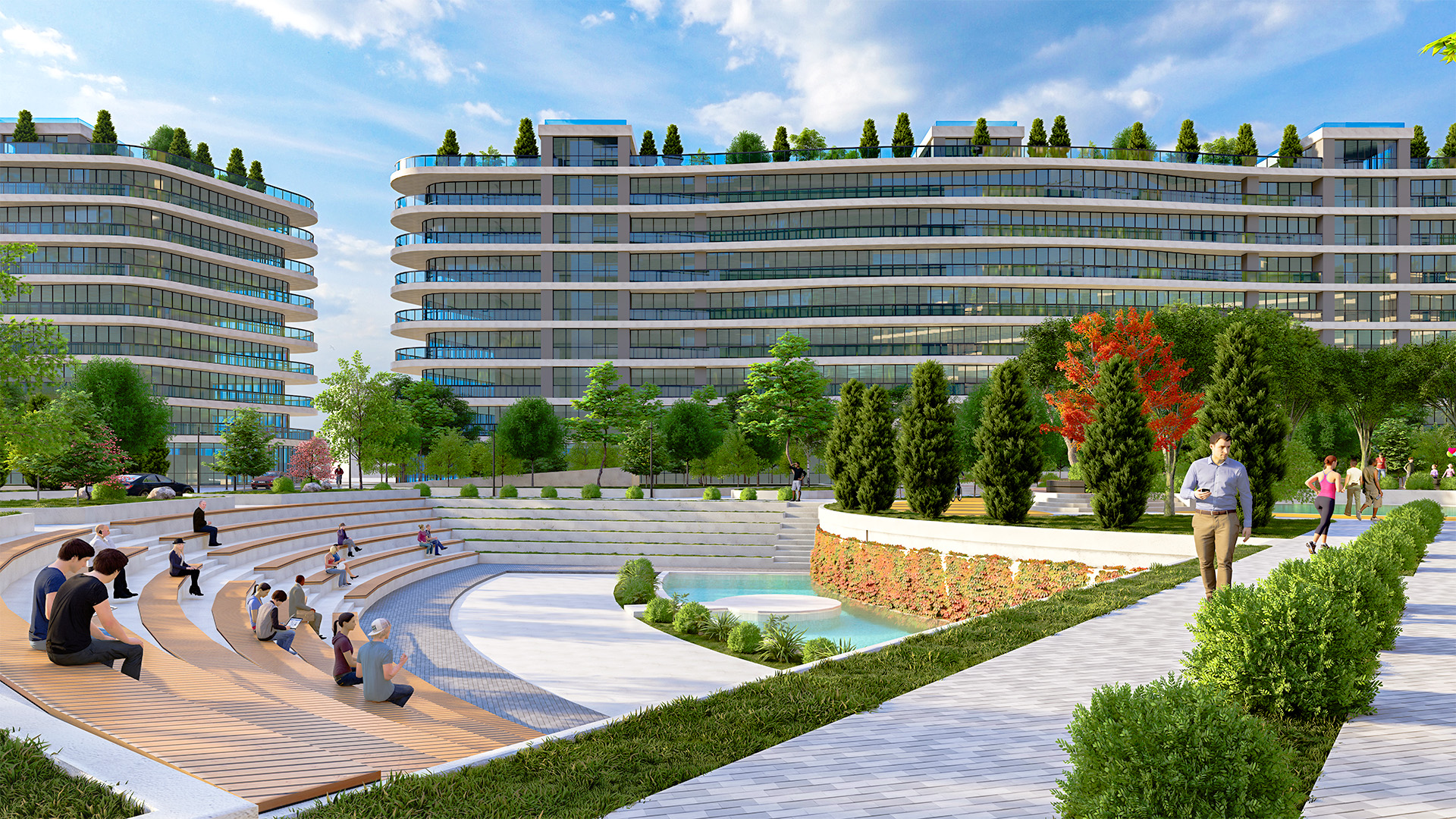 Շենքերում նախագծված է 700 բնակարան՝ առավելագույնս ֆունկցիոնալ և հարմարավետ պլանավորումներով, մակերեսով՝ 50քմ -ից մինչև 100 քմ։Համալիրի տարածքում ստեղծված են իդեալական պայմաններ՝ մայրաքաղաքային աղմուկից դուրս ներդաշնակություն գտնելու, սպորտով զբաղվելու և առողջ ապրելակերպը խթանելու համար։